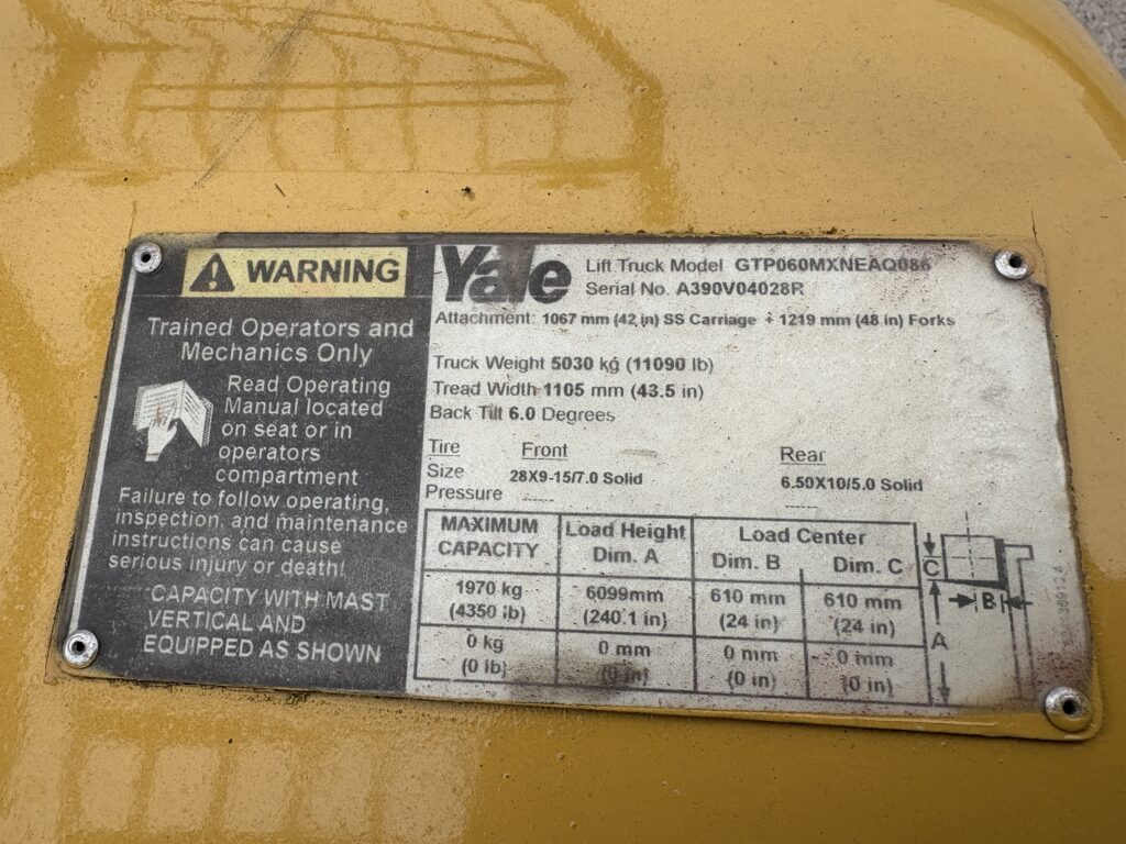 2017 Yale GTP060MX 6000# 20’Quad Mast
