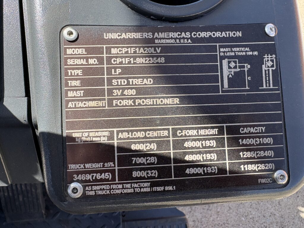 2020 Unicarrier (Nissan) 4000# on Small Chassis